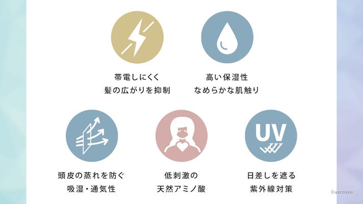 日差しが強い季節も、UVカット効果のあるシルク素材で髪と頭皮をしっかり保護。