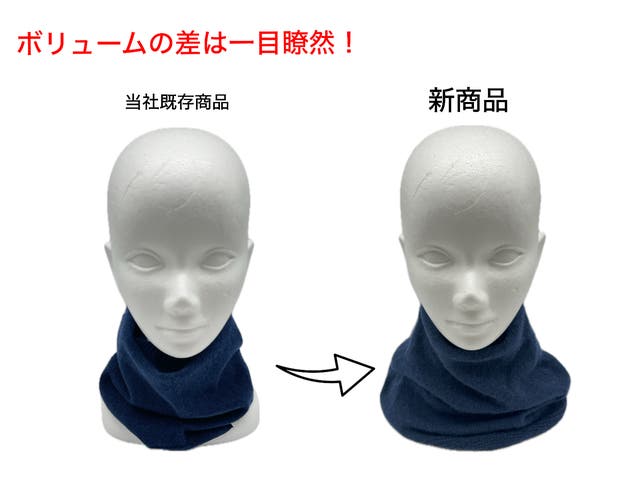 ボリュームを既存当社品より約65%アップしたことで、ネックウォーマー時には「リッチなボリューム感」、キャップ変形時には「ゆったり着用感」を獲得しました。