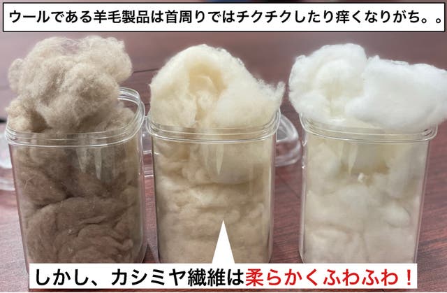 カシミヤは適度に洗って使い続けることで、風合いが一層ふわふわに柔らかくなります。