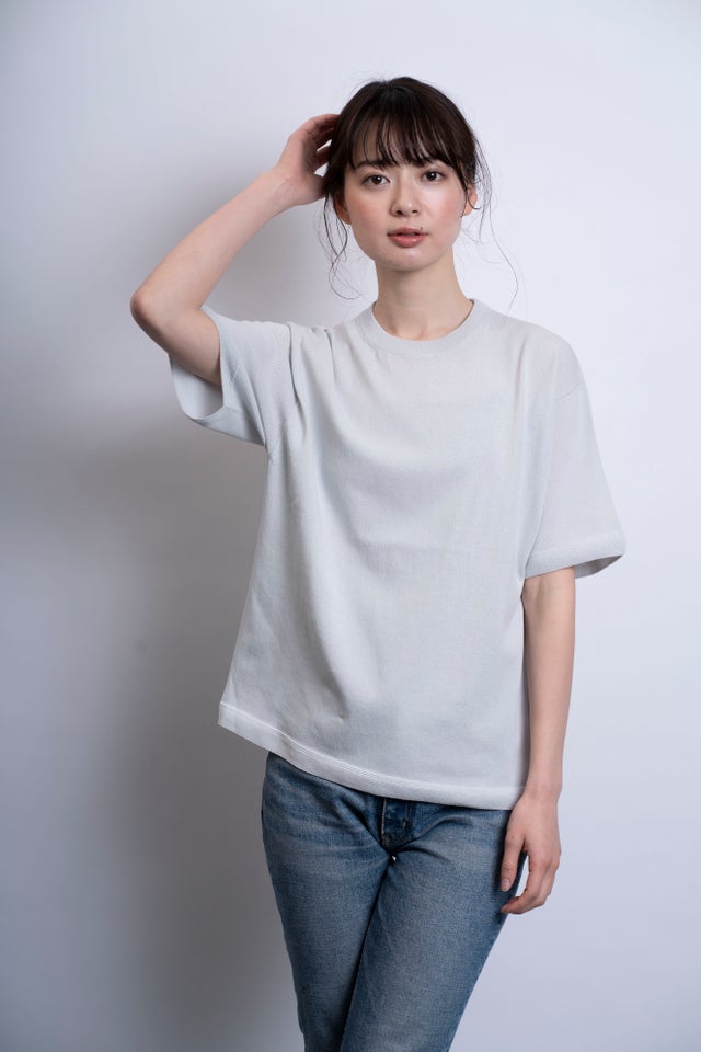 このコールドニットは通気性抜群。コットンと比べて毛羽がないために体温をこもらせずサラサラ感が持続して、とても涼しく過ごせます。