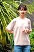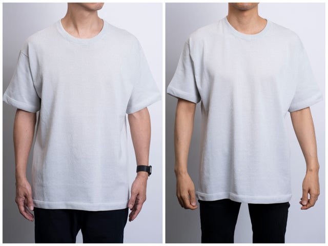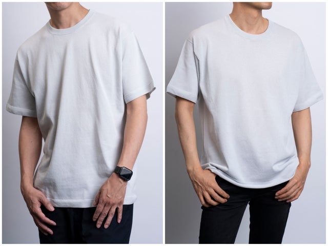 肩回りはドロップショルダーでゆったり。身体にぴったりと張り付かず、風通しが良くなっています。