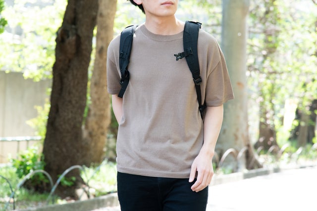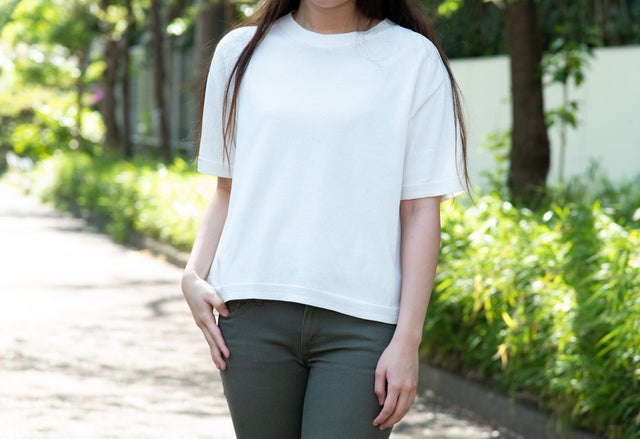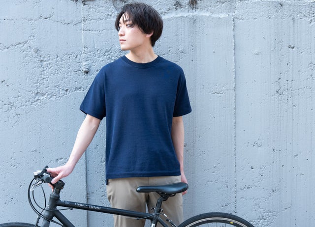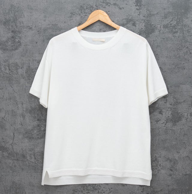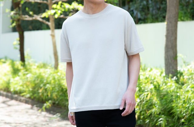 和紙ニットBIZ-Tシャツにはボディの前後差とサイドスリットが設けられています。