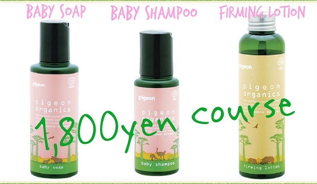 生まれたその日から使える「ピジョンオーガニクス」のベビーシャンプー・ベビーソープと、産後ママのためのボディ引き締めローション「ピジョンオーガニクス ファーミングローション」の3本をセットでお届けします。