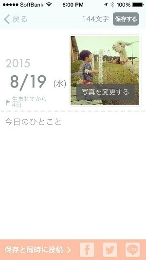 これで、1日分の記録がアプリに保存できます。記録は毎日でなくてもかまいません。101日以上たまったら、フォトブックを作成することができます。