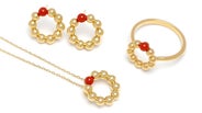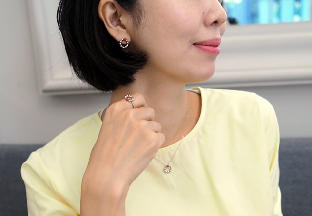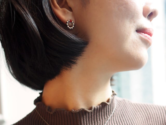 同じデザインで素材・お色の違う4種類のシリーズをご用意いたしました。それぞれシンプルでありながら珊瑚の赤いお色がポイントとなり、周りとは一味違ったジュエリーとなっております。カジュアルな日常使いにも、エレガントにお出かけの際にもコーディネートのアクセントとしてお使いいただけます。