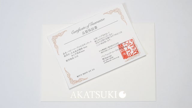 天然の日本産珊瑚であることを証明する保証書をお付けいたします。お使いになっていて不明な点等ございましたらいつでもご連絡くださいませ。
