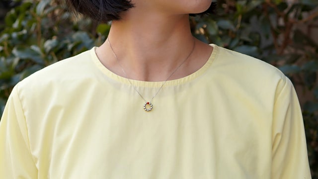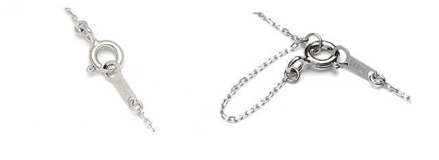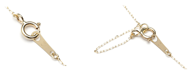 ネックレスは40センチ、37センチでお使いいただけます。37センチで使用する場合には下記のように環に一度通してお使いください。