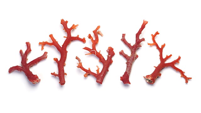 宝石珊瑚は深水100メートルよりも深い海から採れる天然の宝石です。暗い深海から上がってきた珊瑚は初め木の枝のような形をしており、それを職人が一つ一つ手作業で形を作り出していきます。