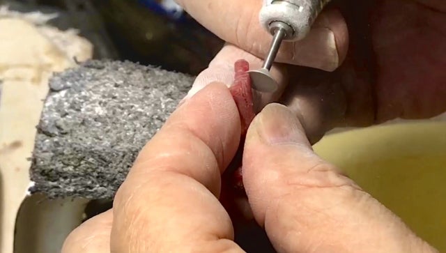 ⬇︎削って3ミリの玉が出来上がりました。ここから磨いて角をとっていきます。