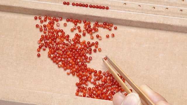 その小ささゆえ、職人の中でもベビーコーラルの製造ができる職人がなかなかおらず、製造することが難しいとされておりました。
