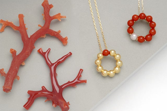- 希少な高知産赤珊瑚を熟練の職人と自社開発したベビーコーラル