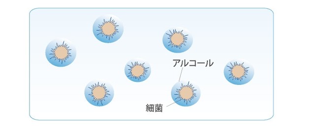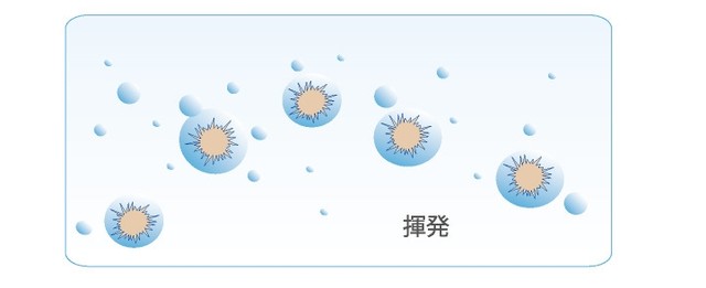 ②アルコールは揮発性が高いため一瞬で揮発してしまいます。