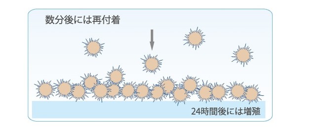 ③アルコールが揮発したあと爆発的に菌が増殖してしまいます。これは、除菌、消臭剤に入っている成分が菌の栄養となるからです。24時間後には菌は数十倍にも膨れ上がります。