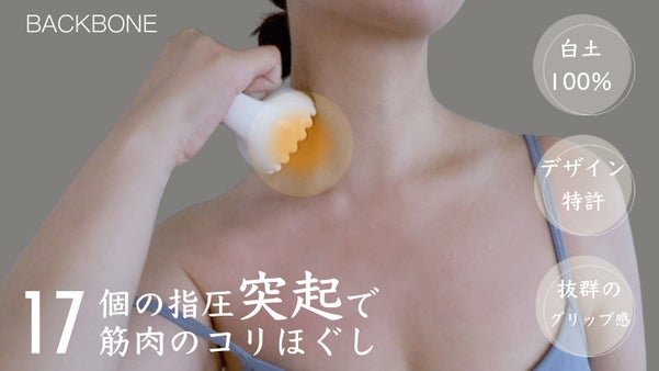 「backbone」はクリームやオイルが付いた手でも滑ってかっさを落とす心配なくセルフケアに集中できるよう、指圧突起を除いた取っ手と製品ボディーの上部は、天然白土のセミマットなツヤ消し質感をそのまま生かしています。