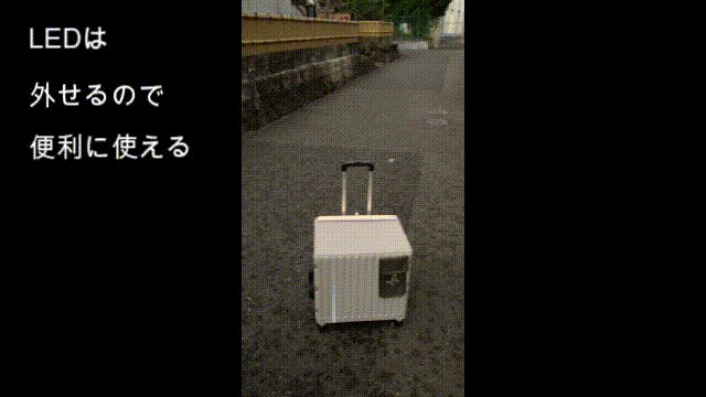 今回開発した「Light-Upモデル」は、使用中にムード作りに加え、荷物を運ぶ際に周囲を照らし、「ライトが取り外せるので」周辺の忘れ物も簡単に探せます。