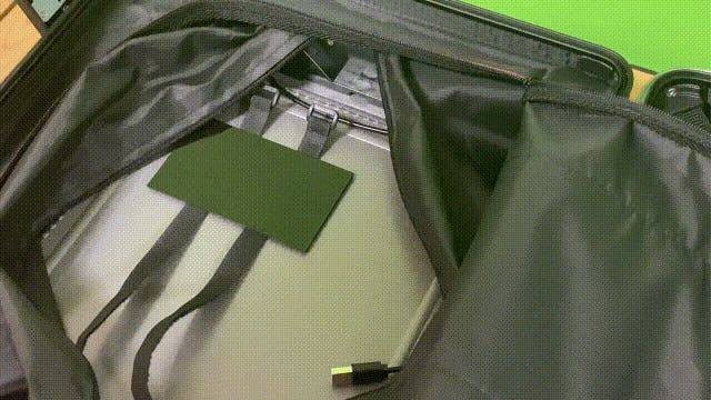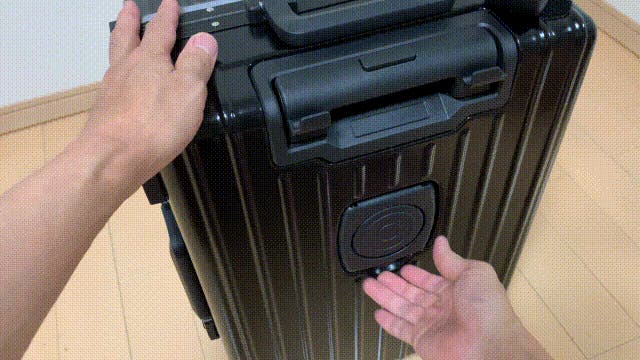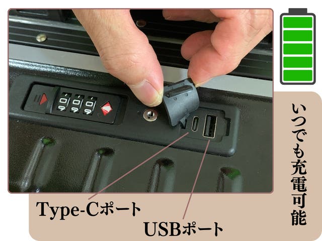 スーツケース内にモバイルバッテリーを収納し、外部からデバイスを充電できる機能です。