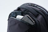 満員電車での前背負いでも取り出しやすいトップポケット。内部には起毛素材、ファスナーはYKK止水を採用しガジェット類を保護します。