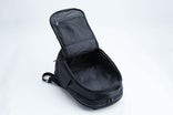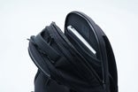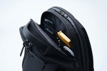 満員電車での前背負いでも取り出しやすいトップポケット。内部には起毛素材、ファスナーはYKK止水を採用しガジェット類を保護します。