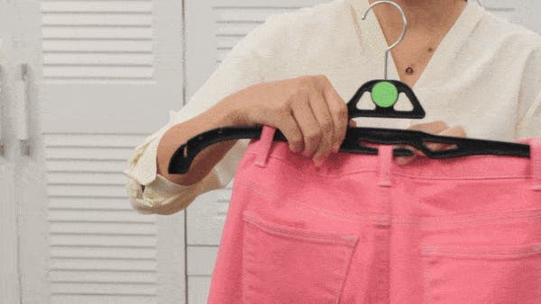 ズボンもぱっと広げて、折れやハンガーの跡を残さず保管できます。