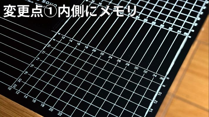 前回は外側だけのメモリでしたが、今回は内側にもメモリを入れ、カットの際により判りやすくしました。
