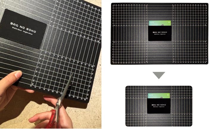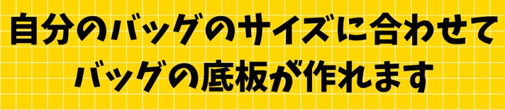 自由にカットできるバッグの底板「バッグのそこが大事」は、自分のバッグにぴったり合わせることができる底板です。