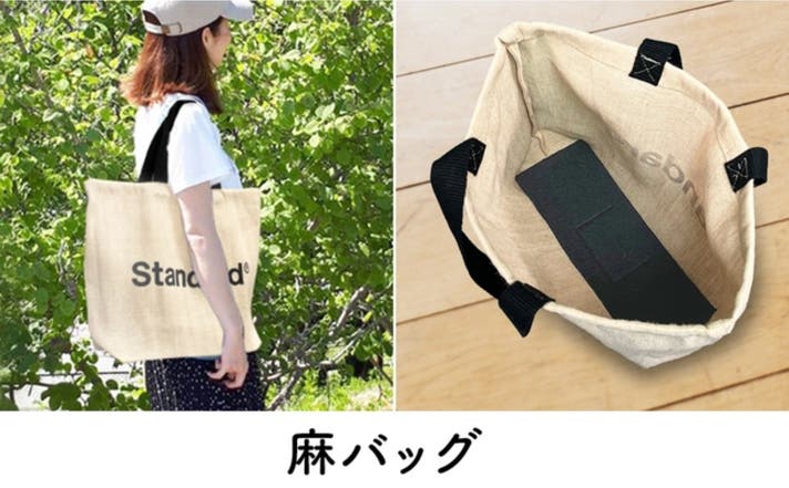 型くずれしやすい麻バッグでも底板を設置するとスッキリしたシルエットに。散歩やお買い物におすすめです。