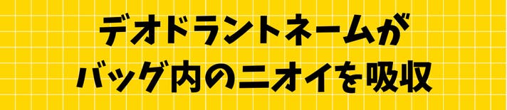 デオドラントネームがバッグ内の気になるニオイを軽減します。