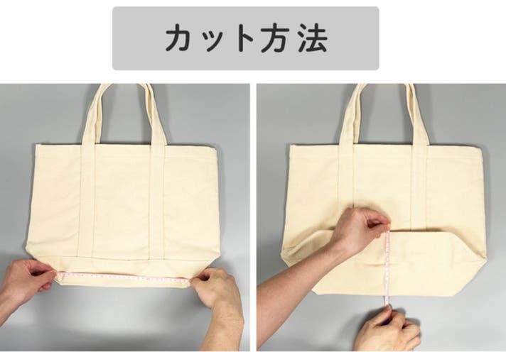 方眼線が入っているため、ハサミを使って簡単にカット可能です。底板を設置することでバッグが安定し、開口部も広がるため荷物の出し入れがしやすくなります。