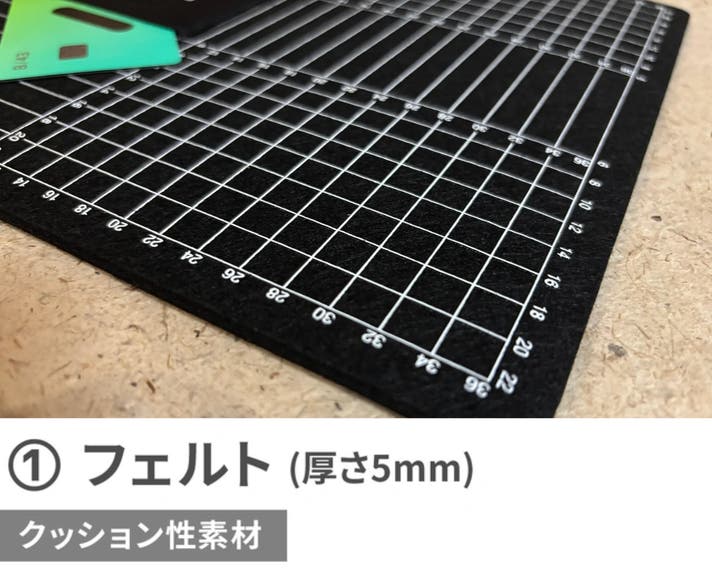 また、ゴム製の素材は臭いが残ったり重さがありました。その点、フェルトは切りっぱなしでもほつれず、軽量で衝撃を吸収する特性があります。