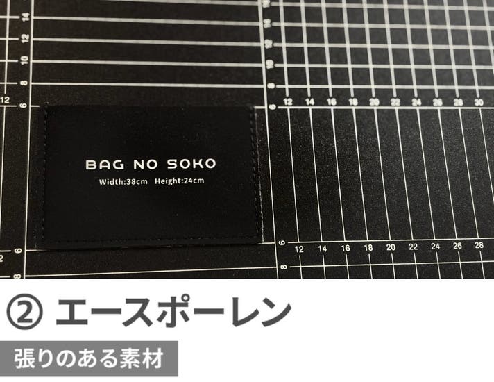 素材は強度と張りに優れたポリエチレン発泡シート。弊社で使用しているエースポーレンは、実際にバッグ工場で心材として使用している素材です。実績と信用の高い素材を使用しています。