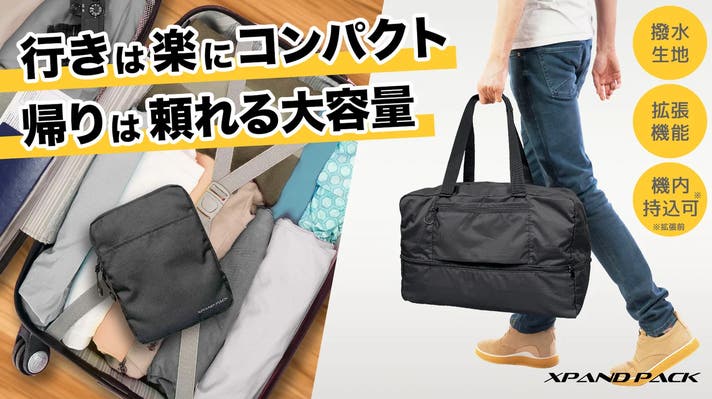 ▼60Lに拡張可能!A5サイズに折りたためる軽くて丈夫な大容量ビッグボストンバッグ