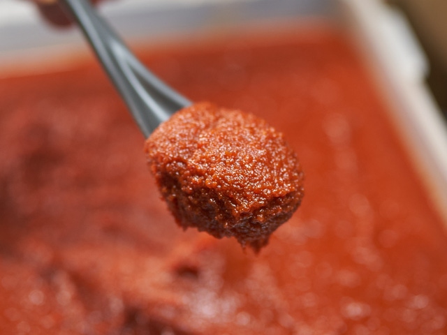 辛みそは師匠から教えていただいた秘伝のレシピを元に、ばか正直のもつ鍋に合うよう配合や素材を改良!!試行錯誤の上にたどり着いた自分史上最高のものです。