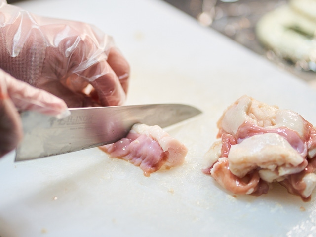 国産の牛小腸、ギアラ、センマイ、ハチノス、牛スジは牧場から仕入れたものを、お店でひとつひとつ丁寧に切り分けて仕込んでいます。小腸以外のホルモンを入れることで旨味もさらにアップ