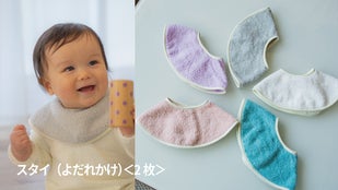「スタイ(よだれかけ)」は、よだれが増える生後半年ごろから特に大活躍するアイテムです。出産準備や出産祝い、生後半年をお祝いするハーフバースデーのギフトなどにもおすすめです。