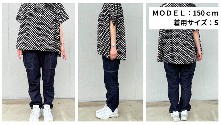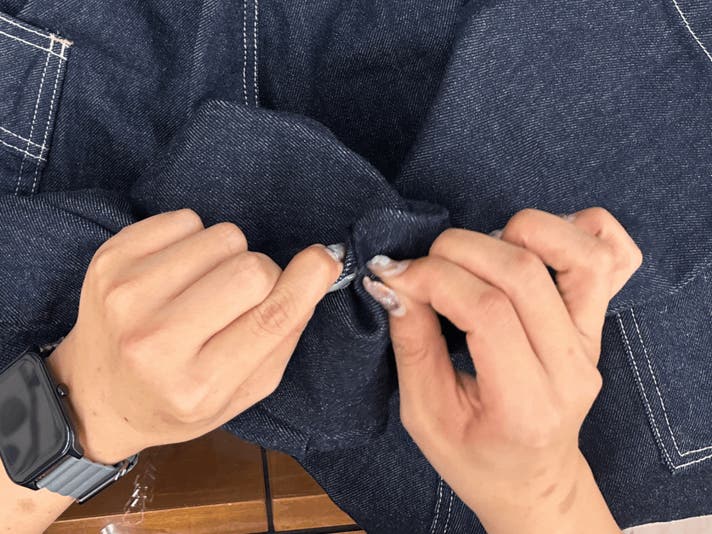 Makuakeでの第一弾となる『バルーンデニムパンツ』を企画した当初から取り入れていた作州絣を、今回も採用しました。デニムの力強さと作州絣の温かさの融合。この一着を通して、私たちの地元岡山県の伝統と、新しいスタイルを提案できればと思います。