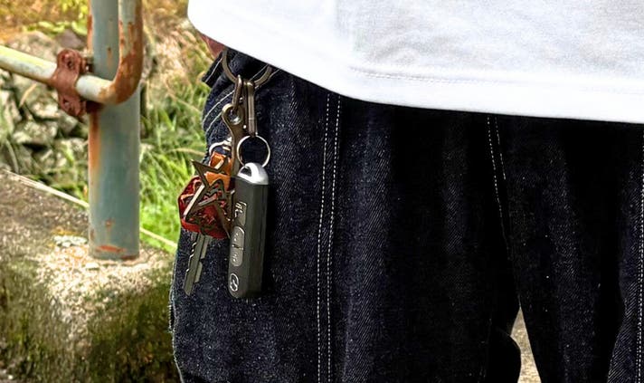 車や、自転車、家の鍵などが付けられる便利なキーリングつき。