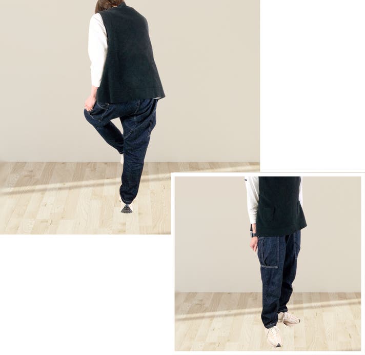 アクティブパンツによく用いられる、ガゼットクロッチを取り入れました。