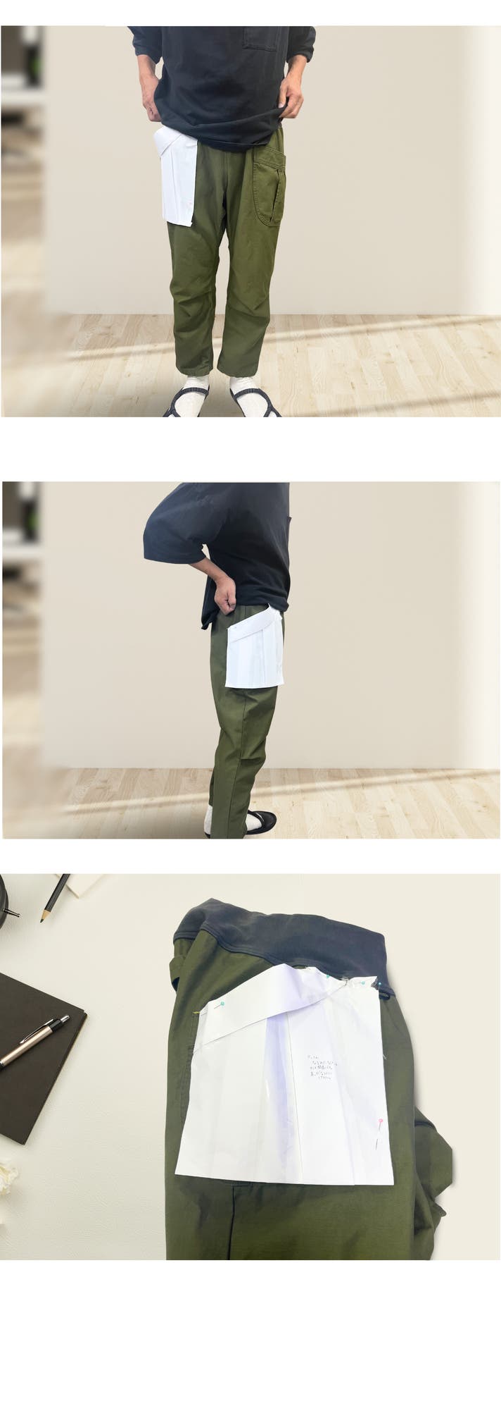 ぽってりとしたシルエットも工夫し、穿いたときに「なんか後姿がおしゃれに見える」と思ってもらえるよう意識しました。