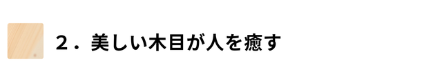 美しい木目は、自然が歳月をかけて生み出すデザイン。心を落ち着かせ、穏やかにするといわれています。