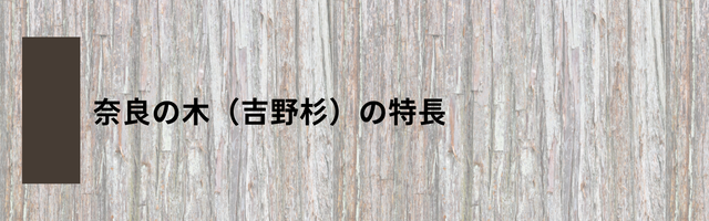 奈良の吉野杉は、強く・たわみにくいという性質があります。