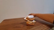 非対称な形状の木材を積み重ねてバランスを取る。