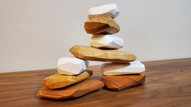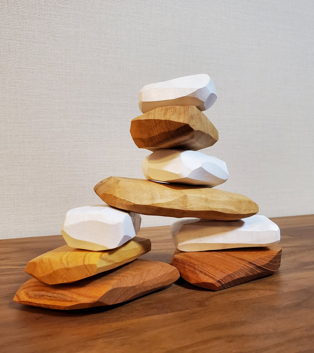 - 積重ねが難しく、子供から大人まで没頭できる。バランス感覚と創造力を養うためのオブジェ