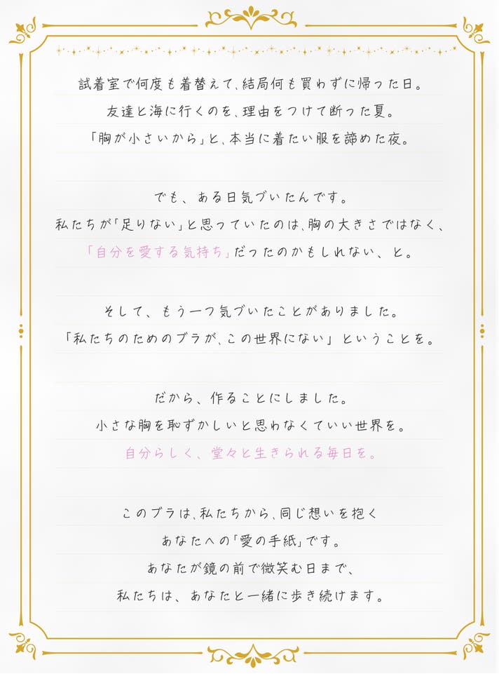 「小さな胸の女性が、もっと自分を好きになれるブラを作りたい」