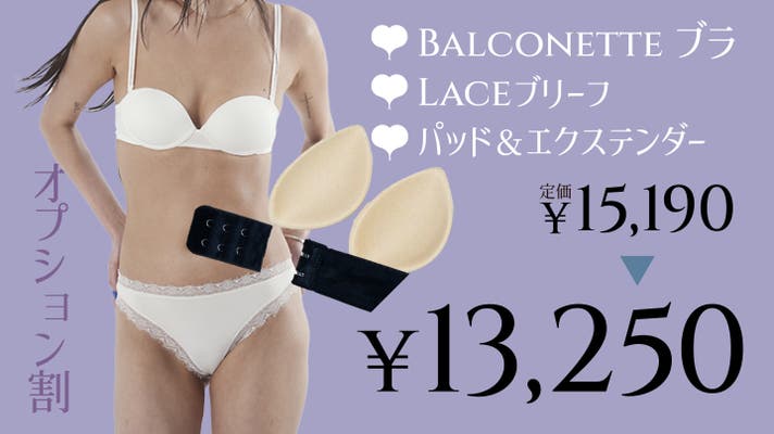 【Laceセット早割】 Modal Balconette Bra + Laceブリーフ+ボリュームパッド+エクステンダー