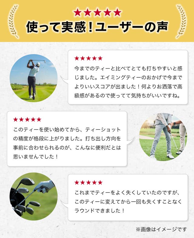 - 打ち出し方向を事前に合わせ、毎回同じボールの高さで再現性の高いティーショットを!