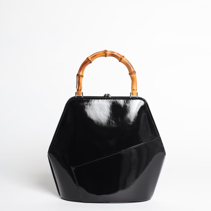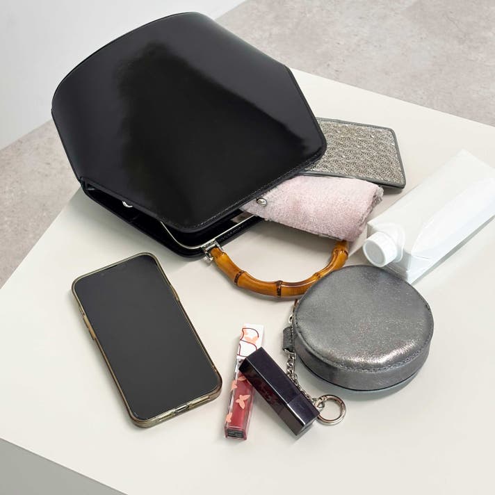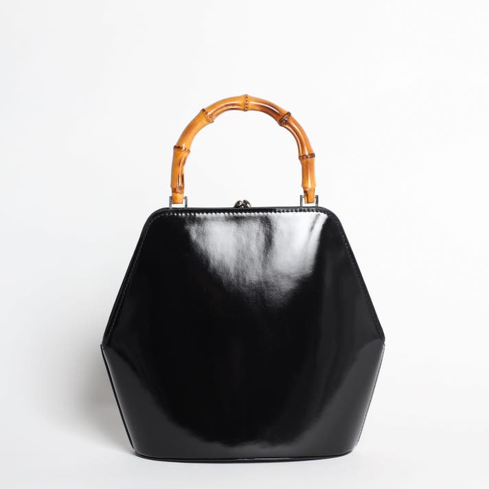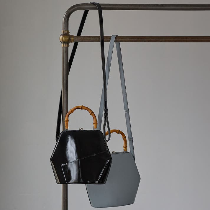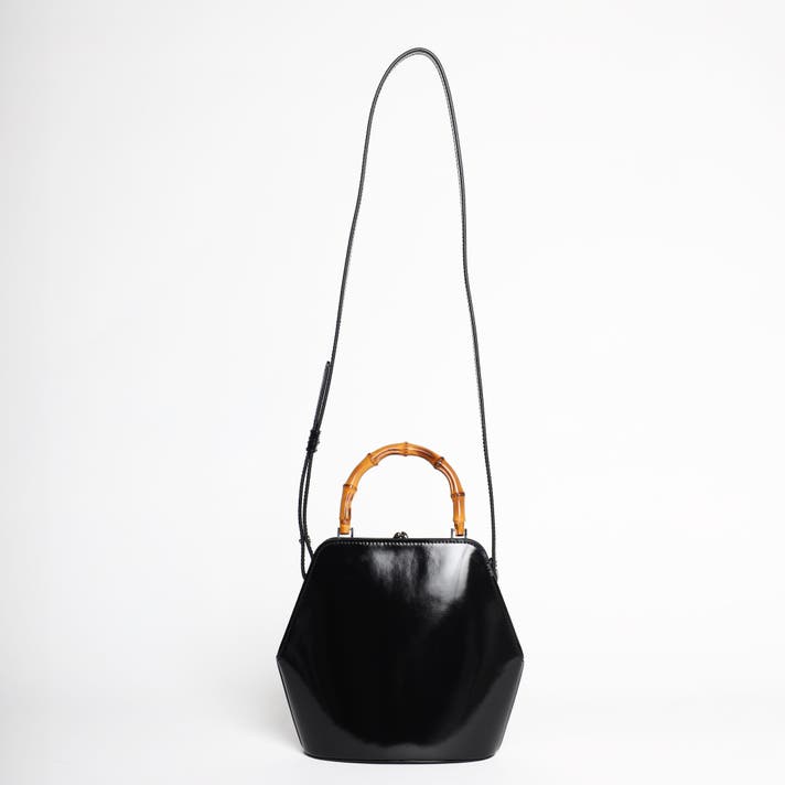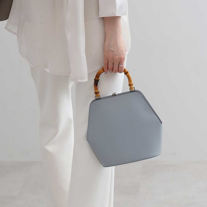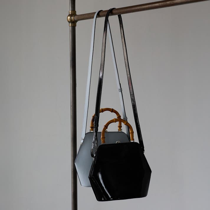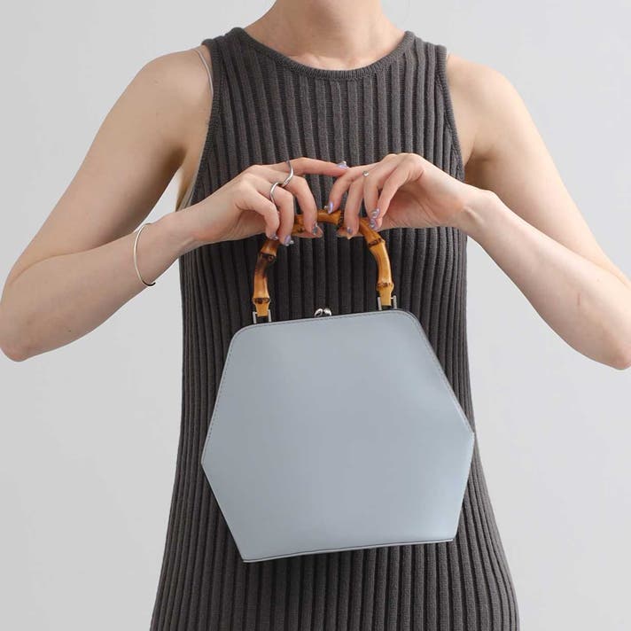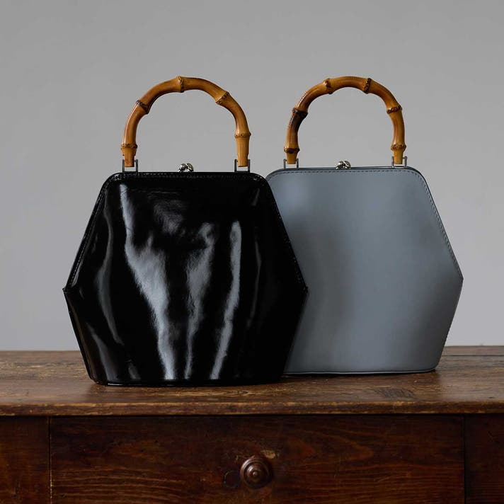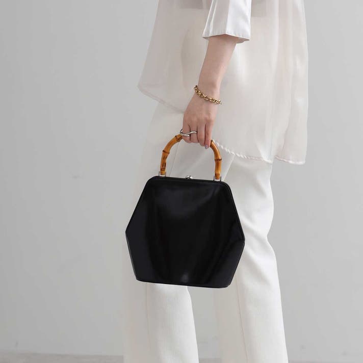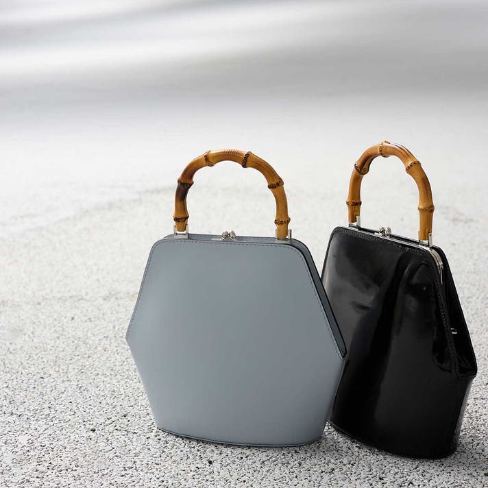 伝統的ながま口とバンブーハンドルに、モダンな六角形のボディが融合することで、普遍的な美しさと現代的な感性が両立する佇まいが生まれました。