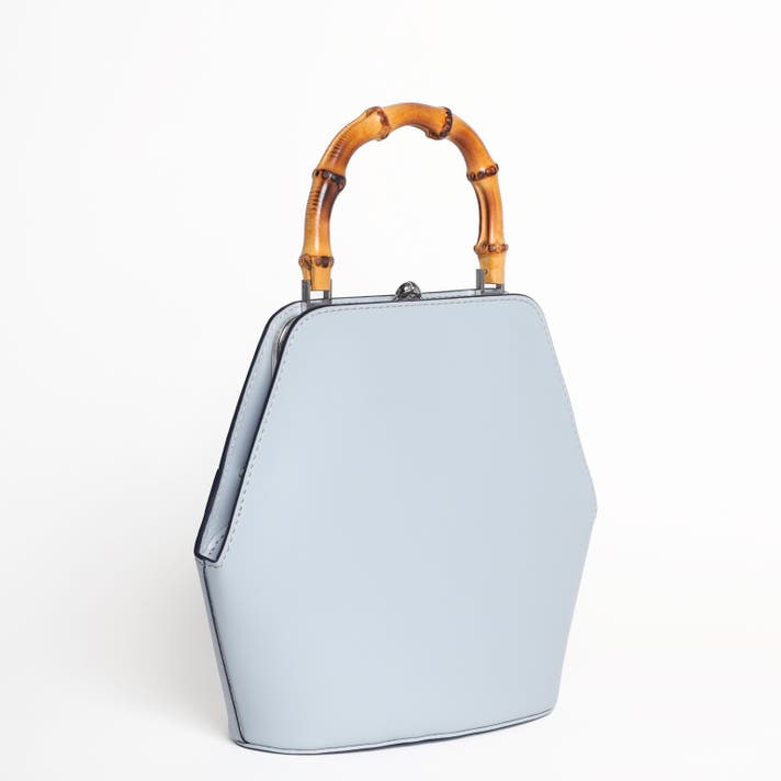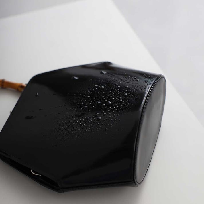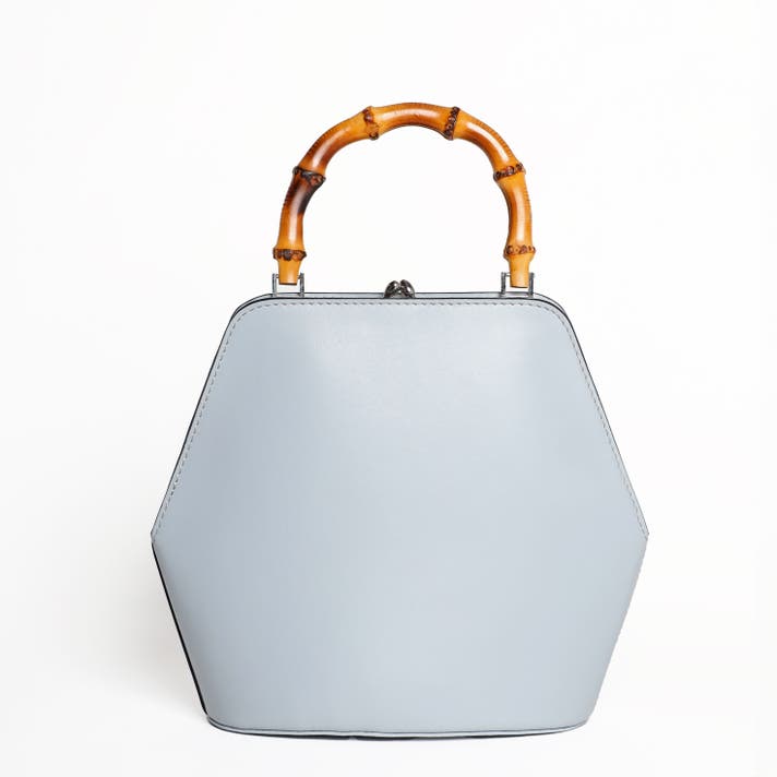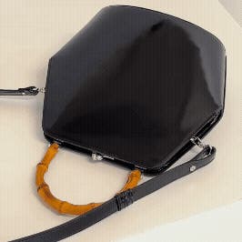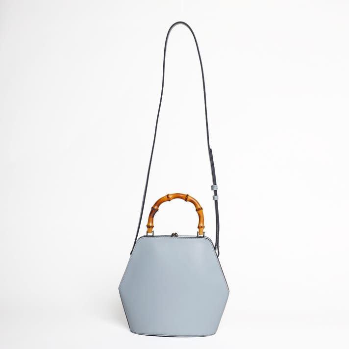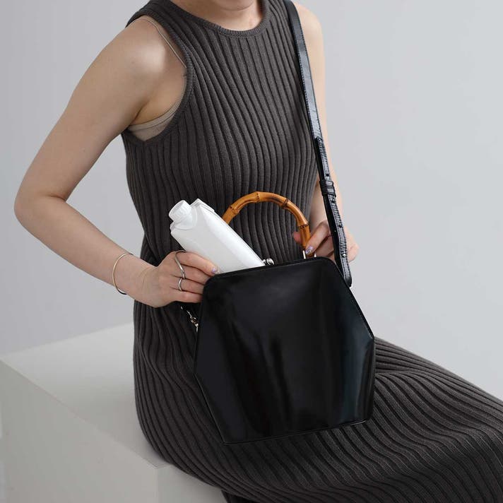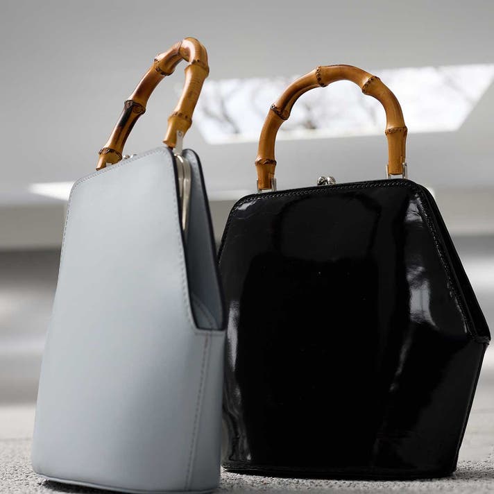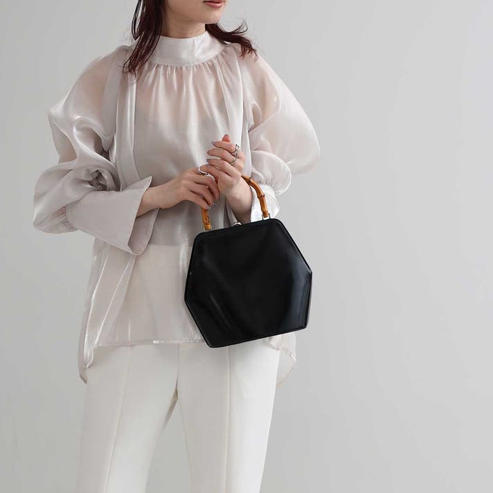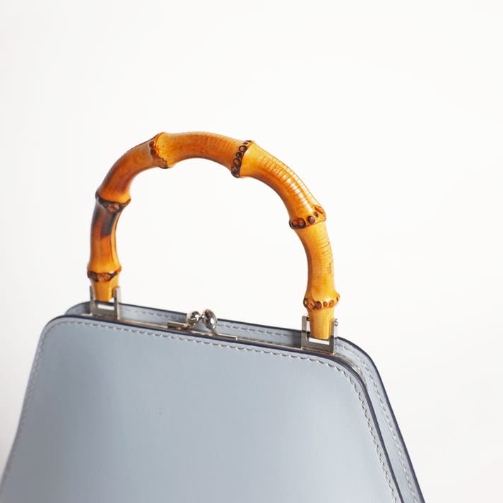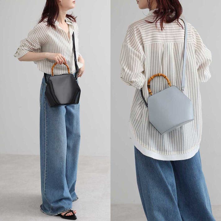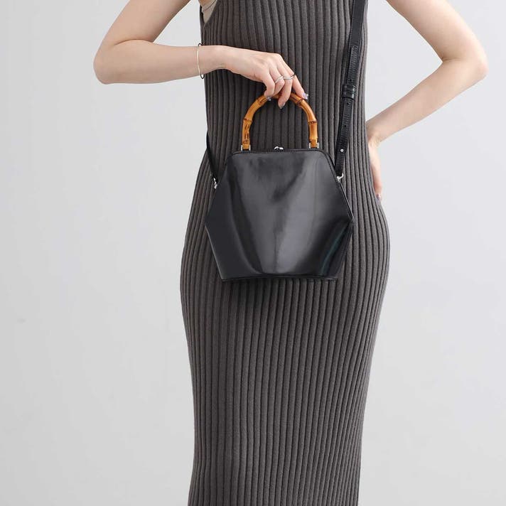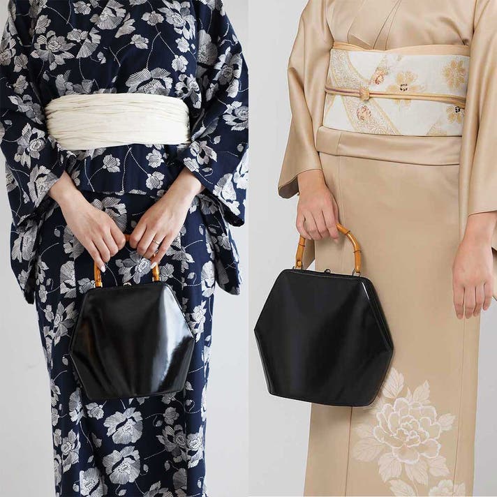 伝統的ながま口とバンブーハンドルに、モダンな六角形のボディが融合することで、普遍的な美しさと現代的な感性が両立する佇まいが生まれました。