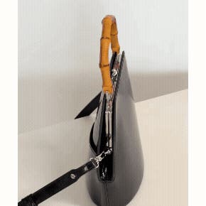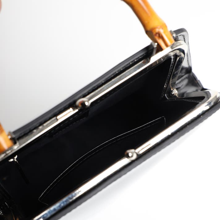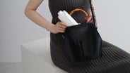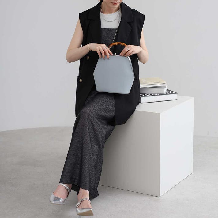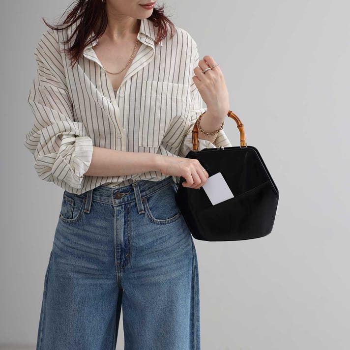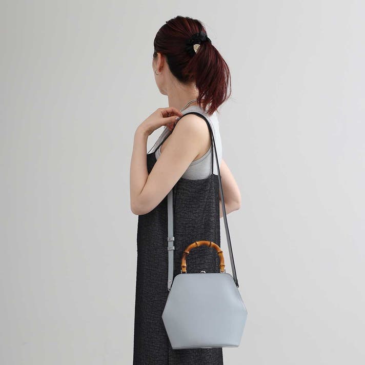 バンブーハンドルを持てば、フォーマルなシーンや上品な装いに映えるエレガントな佇まい。ワンピースなどに合わせて、エレガントにハンドバッグとしてお持ちください 。