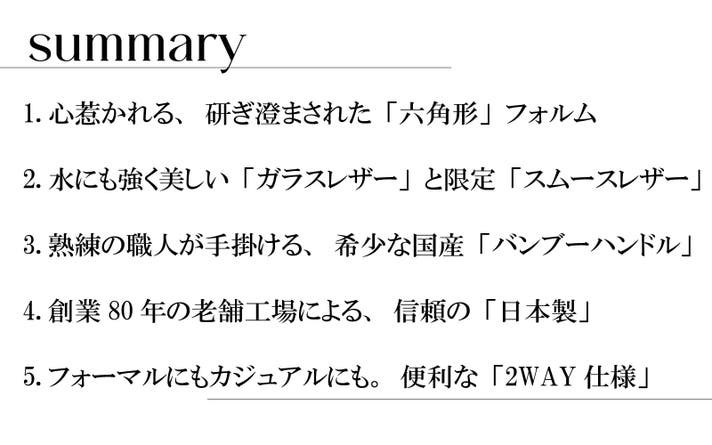 さらに、ガラスレザーは水に強く、型崩れしにくいという実用性も兼ね備え、日々の使用に寄り添います 。