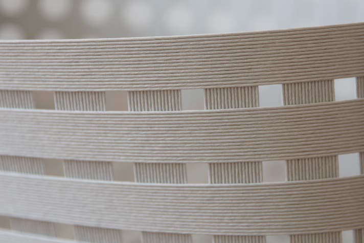 素材には、牛乳パックの端材を再利用した和紙のバンドを使用しています。